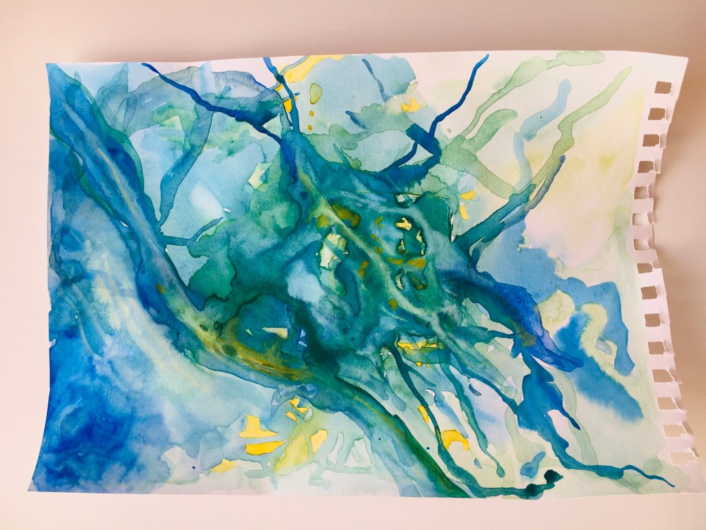 De câteva săptămàni, mai precis de pe 9 martie, am început să explorez acuarelele. Nu mai pictasem cu ele. Mă înscrisesem la un curs de pictură la care am reușit să merg doar o singură dată, mai precis pe 9 martie. Apoi a venit carantina și cursul s-a anulat. Dar aveam acuarelele și caietele de pictură. Așa că în locul cursului obișnuit, am început să mă joc cu acuarelele acasă. Prietena mea, Auriane De Lannoy, a început să țină un curs de ART-terapie online ce mi-a dat un cadru și o structură. Iar azi, printr-un Workshop online, pe Zoom și Skype, am explorat pictura intuitivă și câteva tehnici de acrilic și acuarele cu Avdia Avrumutoae, Avdia Van Art, o artistă româncă ale cărei picturi mi-au stârnit admirația. Și uite așa, dintr-una într-alta, de la o coală de hârtie cu o tentativă nereușită de bambuși (prima mea pictură cu acuarele), am ajuns la câteva creații de care și acum mă minunez.