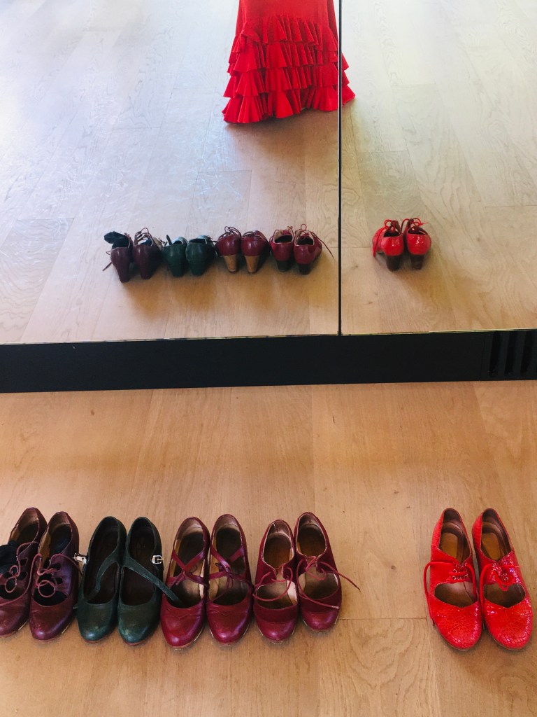 I had arrived late at my flamenco class and then I left early. It seemed like an eternity until I got changed in the locker room, pulling on my dance outfit, a long and fluid skirt with ruffles, a T-shirt depicting a dancer gracefully holding a red fan and red shoes with laces and metallic heels and toes that make a sound when you walk. Before entering the dance studio, I had to have a short stop at the toilet. Then I had to go to the locker room again. I was cold and needed a scarf and a cardigan. By the time I finally joined my classmates, half an hour had passed. I was ready to face the consequences of being late. And anyway, I knew that under those current circumstances, all I could do was my best.