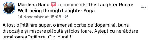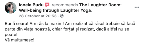 Beside laughter exercises, the laughter yoga workshops include also breathing exercises, a laughter meditation (you need to experience it, to understand it) and a relaxation meditation at the end.