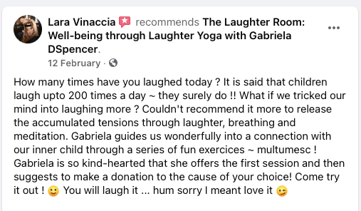What people say about my Laughter Yoga workshops, online or face-to-face